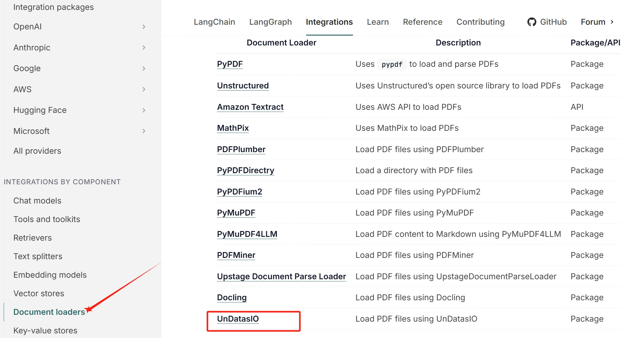 Meanwhile, the “Document loaders” section on the LangChain website has been updated simultaneously with UndatasIO-exclusive features.